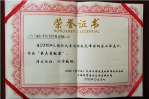 熱烈祝賀天守股份榮獲“2018AIL國(guó)際汽車(chē)表皮峰會(huì)最具貢獻(xiàn)獎(jiǎng)”