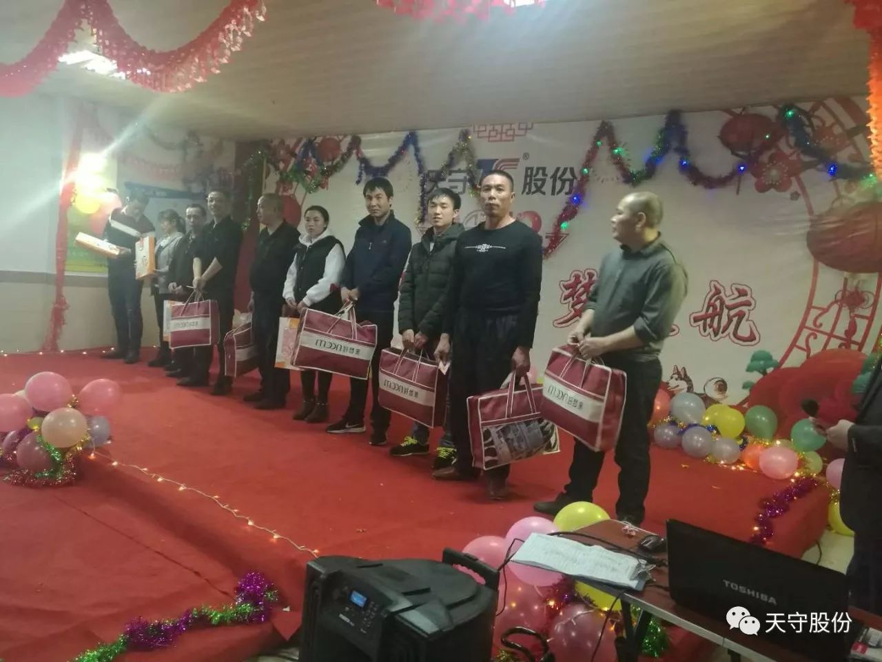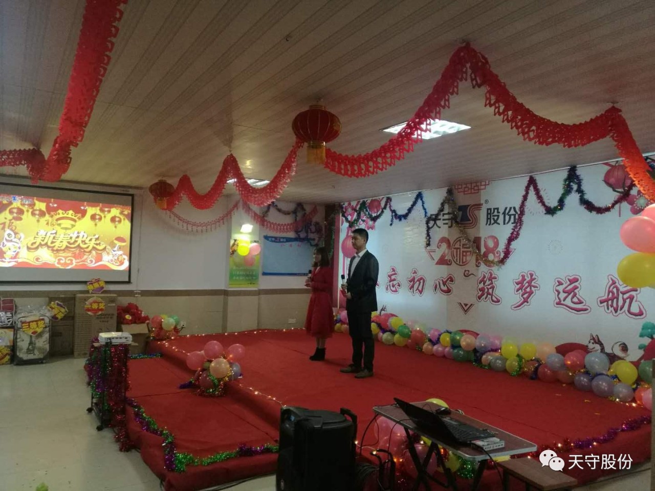紅紅火火迎新春,砥礪前行創(chuàng)佳績,展望2018年,機遇與挑戰(zhàn)并存。2018年1月15日(除夕)晚上6點左右,天守(福建)超纖科技股份有限公司“不忘初心,筑夢遠航” 的迎新晚會在職工食堂大廳隆重舉行。近300名留廠員工與家屬共聚一堂,喜迎新春。 晚會上,員工們積極參與,并演了豐富多彩的文藝節(jié)目,同時,公司為員工準備了豐富的獎品用于抽獎。在這個辭舊迎新的日子里,全體員工為新的一年舉杯同慶,共同祝愿公司在新的一年里向著更高的目標展翅翱翔。 整個晚會在和諧、溫馨、激情、歡樂的氣氛中圓滿落下帷幕,展現了天守員工充滿活力、積極向上、團結進取的精神面貌,呈現出天守集團這個大家庭的歡樂和諧。 回首2017年,我們滿懷豪情,展望2018年,我們重任在肩。愿新的一年,全體天守人將不忘初心,筑夢遠航。