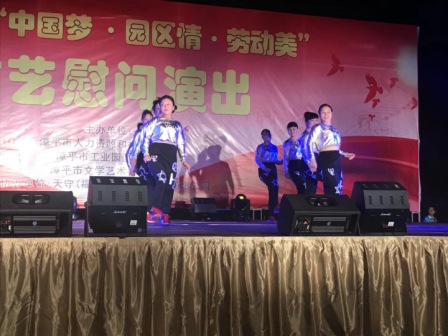 值此第128個(gè)“五一”國際勞動(dòng)節(jié)來臨之際,4月27日,由漳平市人力資源和社會保障局、漳平工業(yè)園區(qū)管委會、漳平市文學(xué)藝術(shù)界聯(lián)合會主辦,天守(福建)超纖科技股份有限公司承辦的“中國夢·園區(qū)情·勞動(dòng)美”文藝慰問演出在工業(yè)園區(qū)拉開序幕。有關(guān)單位負(fù)責(zé)人與來自工業(yè)園區(qū)企業(yè)1000余人一起觀看文藝演出,共迎“五一”國際勞動(dòng)節(jié)。 整臺演出以弘揚(yáng)勞動(dòng)者正能量,展現(xiàn)勞動(dòng)者的勞動(dòng)風(fēng)采和精神面貌為主線,以精彩紛呈的節(jié)目將節(jié)日的歡快喜慶與黨的十九大精神交相輝映,藝術(shù)再現(xiàn)廣大勞動(dòng)者的時(shí)代風(fēng)采和豪邁激情,突出了我市“鐵心抓項(xiàng)目,奮力促發(fā)展”的工作主題,不斷激發(fā)全市廣大勞動(dòng)者凝聚起為建設(shè)富強(qiáng)精美幸福新漳平而努力奮斗的信心與勇氣。 此次演出讓廣大園區(qū)企業(yè)職工深受鼓舞,感受到市委、市政府對工業(yè)園區(qū)企業(yè)員工的關(guān)愛。不少員工表示,感謝演出了這么精彩的節(jié)目,以后將以更加飽滿的熱情、更大的干勁投入到工作中,為建設(shè)富強(qiáng)精美幸福新漳平做出更大貢獻(xiàn)。